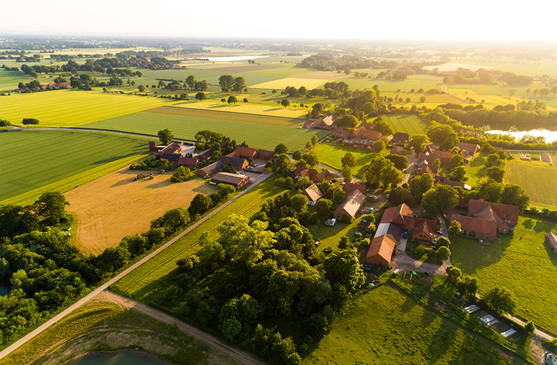 Viele Bauernhöfe liegen in kleinen Dörfern. Dort kennt man sich gut und hilft sich gegenseitig.