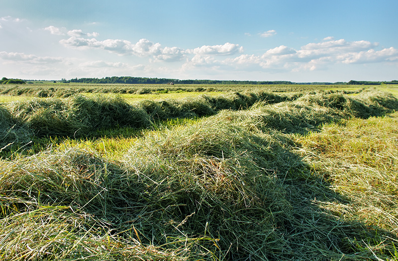Bei der Ernte holen die Bauern Pflanzen vom Feld, zum Beispiel Gras, Mais oder Obst. Das passiert meist im Sommer oder Herbst.